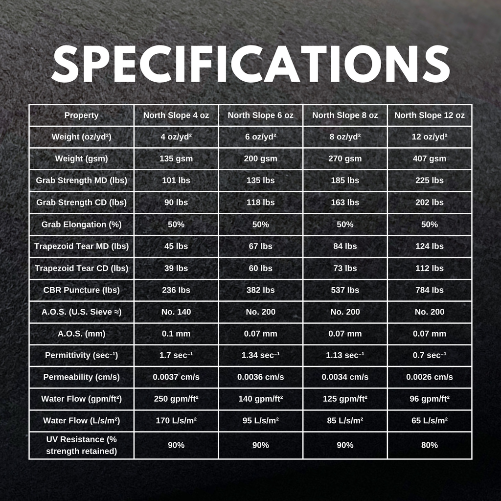 Whether you're tackling landscaping ventures, road construction, or building retaining walls, North Slope Filter Fabric is engineered to excel. Its durable polypropylene composition ensures longevity and resilience, effectively preventing soil erosion and optimizing water flow. Trust in North Slope Filter Fabric for a versatile, dependable solution that meets the demands of diverse applications. Upgrade your projects with the strength and efficiency of North Slope Filter Fabric – the go-to choice for professionals seeking unparalleled performance.